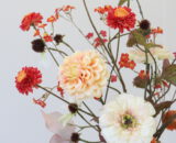 Dit zijdeboeket is speels gebonden in mooie warme terra kleuren!. Het boeket dat wordt afgebeeld is; formaat middel.